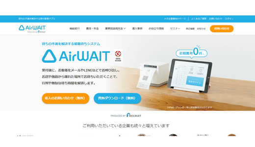 株式会社リクルートの「Airウェイト」は、iPadとプリンターだけで簡単に利用が開始できる順番待ちシステムです。
